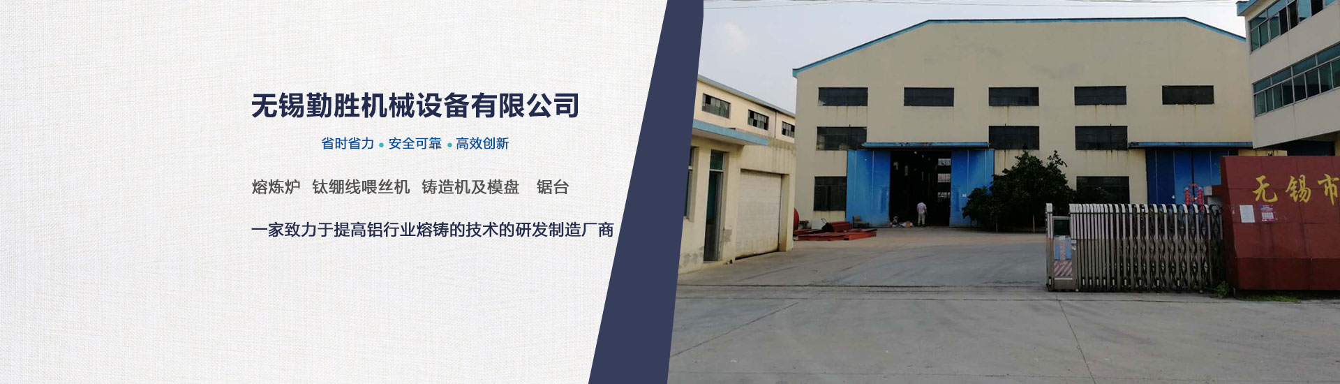 公司簡介  1.1.1 無錫勤勝機械設備有限公司的愿望是致力于提高鋁行業熔鑄的技術?! ?.1.2 無錫勤勝機械設備有限公司密切跟蹤 的冶煉和鑄造技術的發展方向,學習創新,研 制開發, 生產銷售鋁行業熔鑄用的各種相關設備和材料?! ?.1.3 無錫勤勝機械設備有限公司以強大的專業設計人員和遍布全國的銷售網絡,竭誠貢獻 的技 術水平和優質的服務支持,以全新的管理思想和經營理念為貴公司提